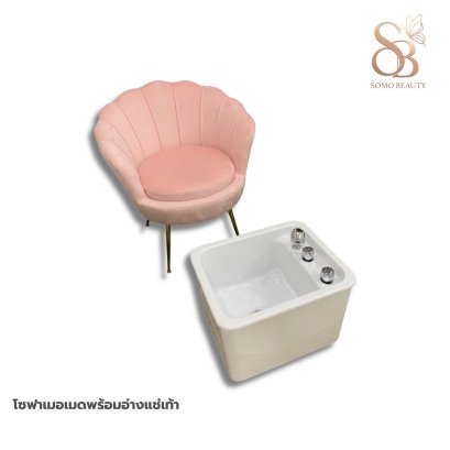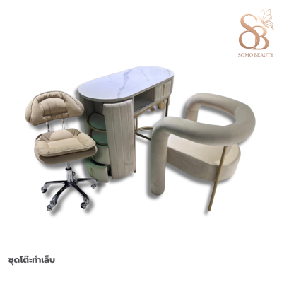 ชุดโต๊ะทำเล็บรุ่น ฟักทอง 140ซม.+โซฟายู 2ตัว+เก้าอี้โบว์ 2 ตัว