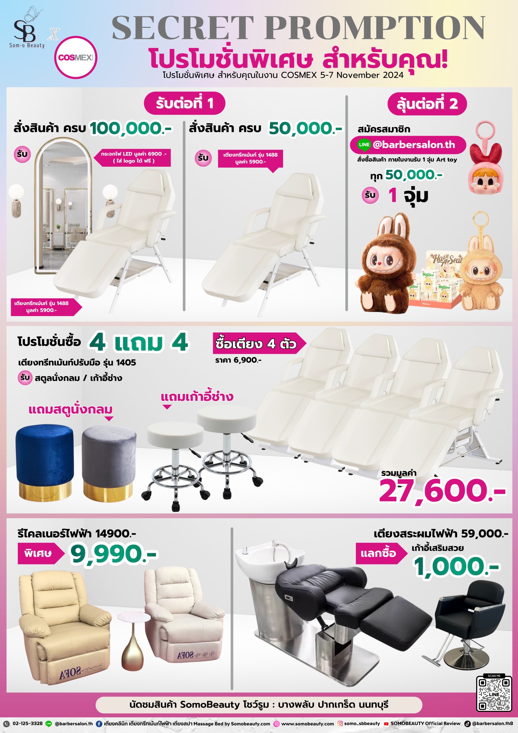 Somo Beauty ศูนย์รวมเตียงทรีทเม้นท์ไฟฟ้า เตียงคลินิก เตียงสปา เก้าอี้หัตถการ เก้าอี้ดริปวิตามินผิว สำหรับท่านผู้ประกอบการ Beauty & Wellness มีโปรโมชั่นภายในงาน