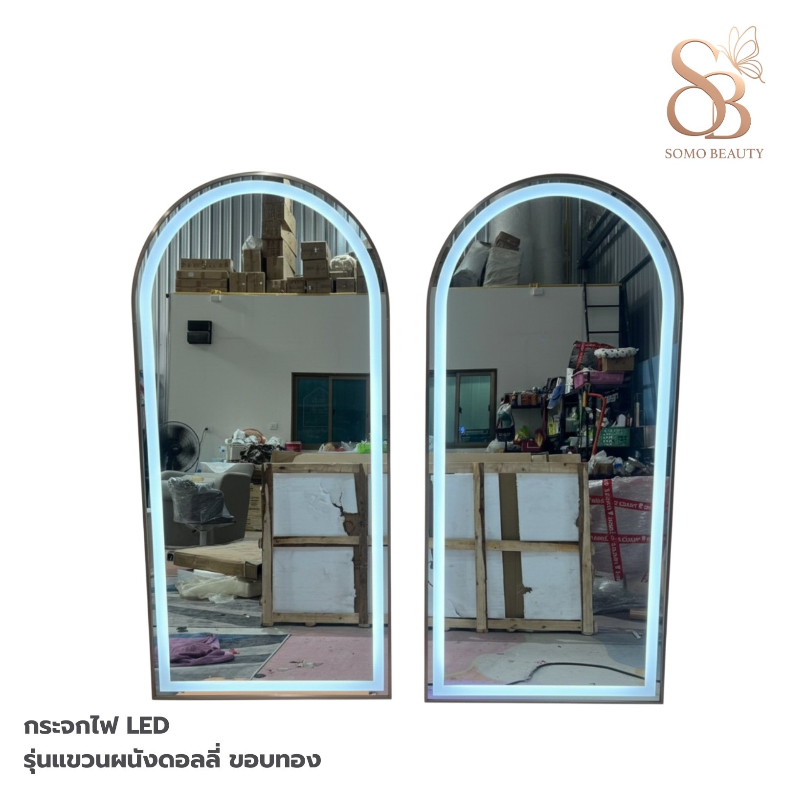 - กระจกไฟ LED รุ่นแขวนผนังดอลลี่ กรอบกระจกอลูมีเนียม หนา 5 cm เลือกสีได้