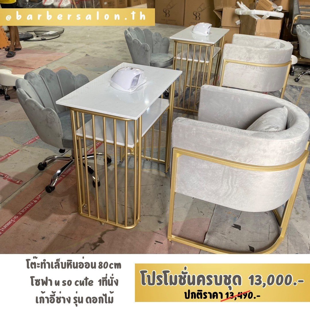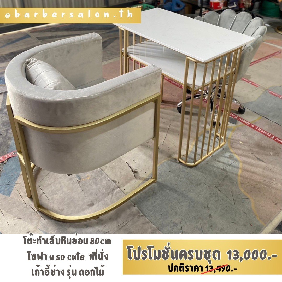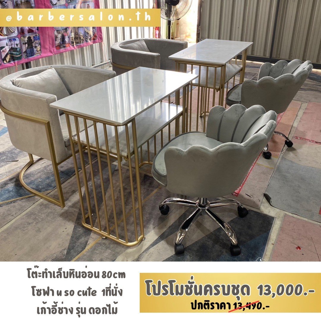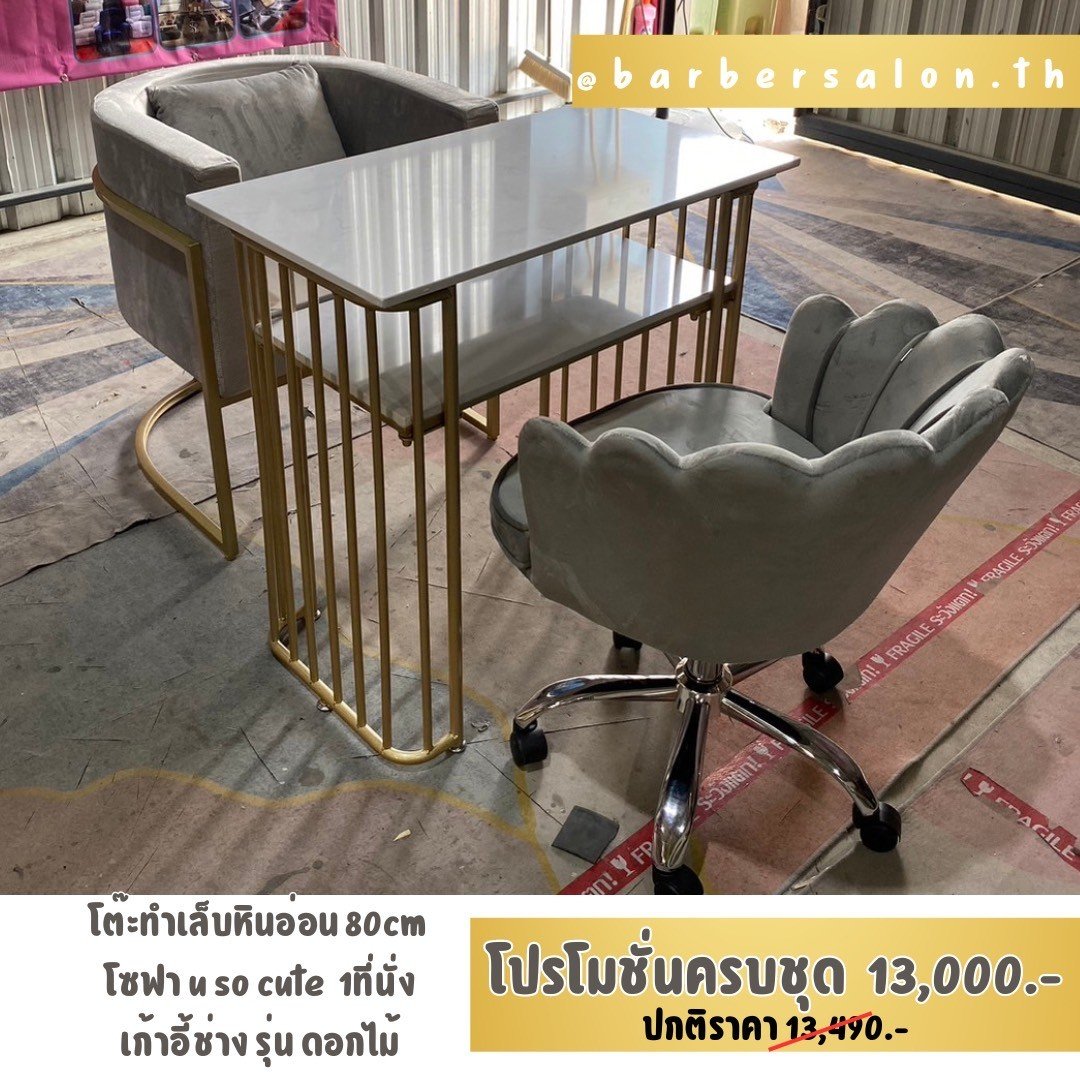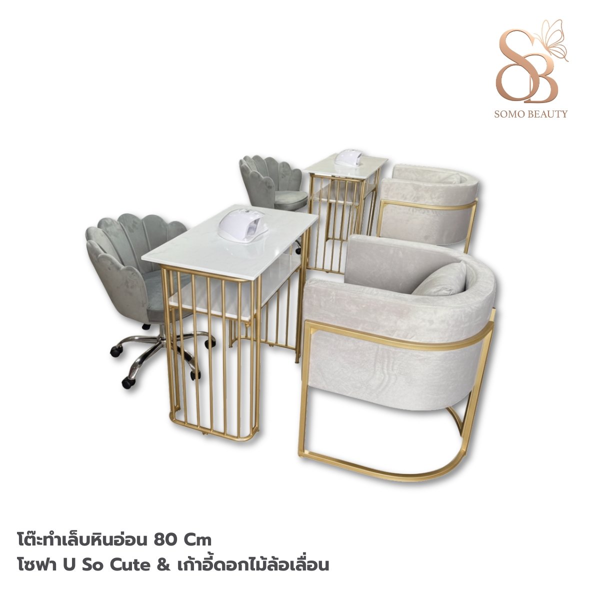 โต๊ะทำเล็บหินอ่อน 80 Cm & โซฟา U So Cute & เก้าอี้ดอกไม้ล้อเลื่อน