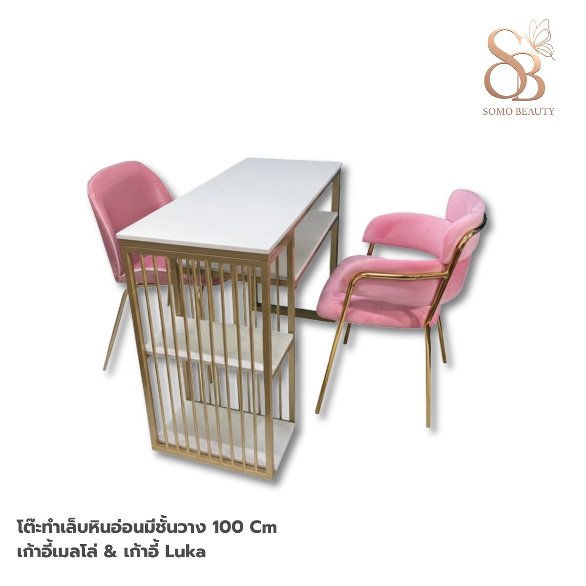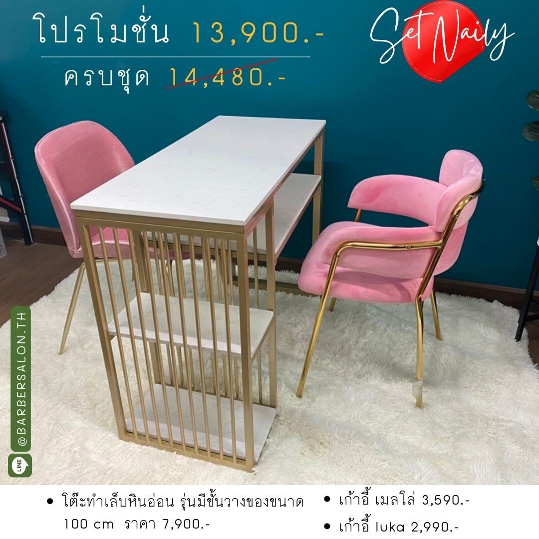 โต๊ะทำเล็บหินอ่อนมีชั้นวาง & เก้าอี้เมลโล่ & เก้าอี้ Luka