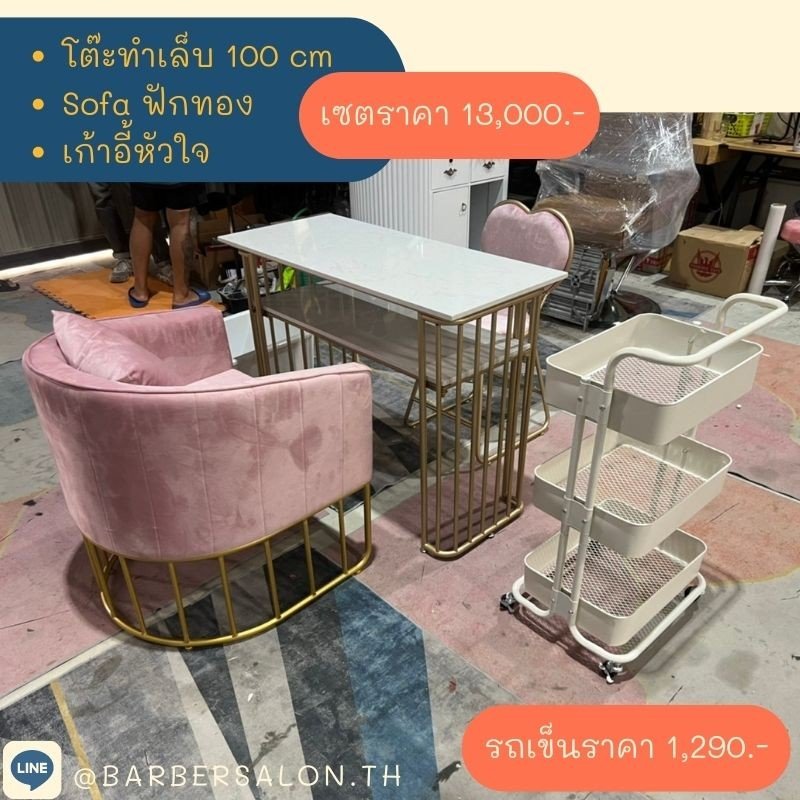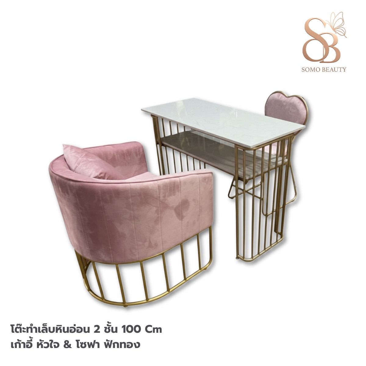 โต๊ะทำเล็บหินอ่อน 2 ชั้น 100 Cm & เก้าอี้ หัวใจ & โซฟา ฟักทอง