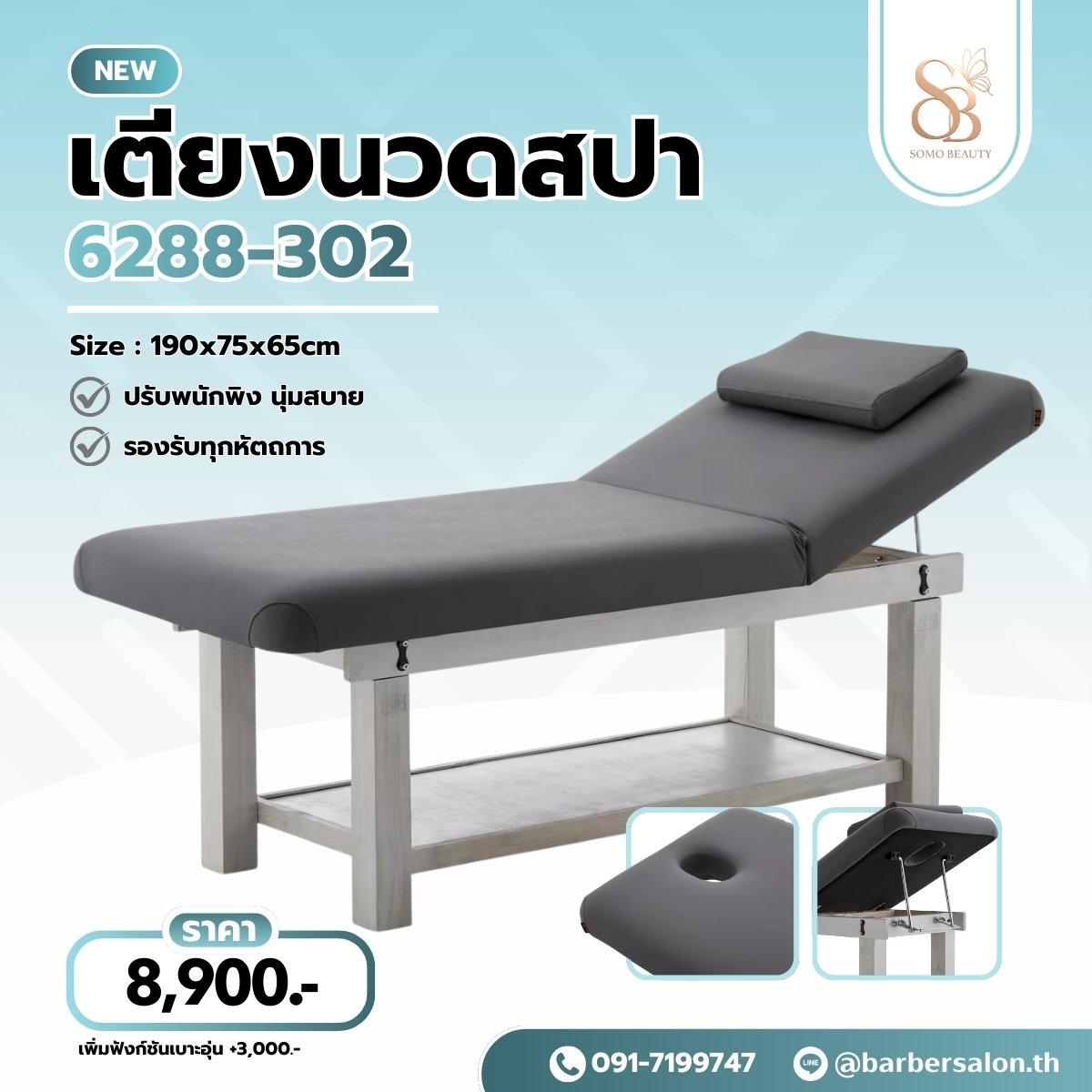 หมวดหมู่ : เฟอร์นิเจอร์คลีนิก สปา ร้านสัก ,  เตียงสปาไฟฟ้า เตียงนวดสปา เตียงนวดน้ำมัน ,
